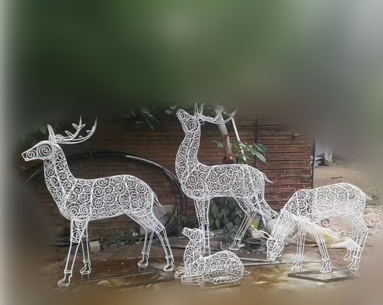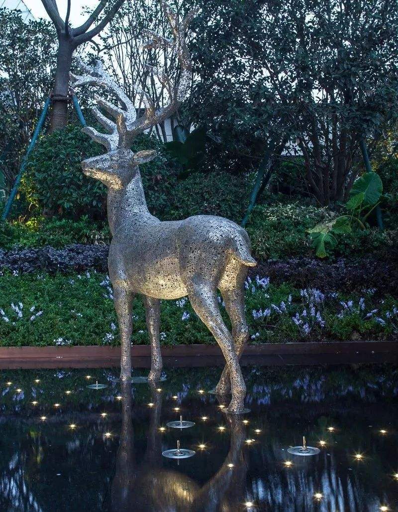 不锈钢镂空灯光动物鹿雕塑 公园夜景雕塑 作为美的象征,鹿与艺术有着不解之缘,历代壁画、绘画、雕塑中都有鹿。